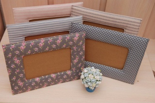 С помощью скотча прилепите фотографии, рисунки, картинки к картону и прибейте его гвоздиками к обратной стороне рамки.