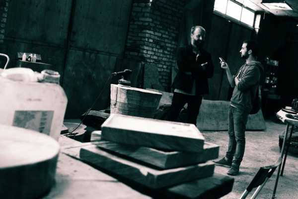 Павловский Посад – один из тех подмосковных городов, в котором надо постараться, чтобы найти в нем что-то действительно впечатляющее. Нас встретили на станции и минут десять везли по городу. За окнами проплывала повседневная жизнь павловопосадцев, а в машине играл джаз: все это очень удачно сочеталось. Мастерская Дениса Милованова по производству дубовой мебели находится в удивительном месте — на территории старой текстильной фабрики, выстроенной из красного кирпича. На вершине фабричного здания красуются цифры «1910». Сама мастерская сравнительно небольшая. В одном помещении находятся рабочие столы, предметы на разных стадиях обработки и затейливый столярно-плотницкий инструмент, в другом – сварщики трудятся над большими металлическими чанами (вскоре мы узнаем, что это своеобразный «выварочный цех»). Летом основная работа ведется на улице. Тимур и Александр, резво обращающиеся с пилами и шлифовальными аппаратами, отвлекаются ненадолго, чтобы с нами поздороваться. Дуб повсюду: на подъездной дороге к мастерской лежит в ряд с десяток огромных стволов, перед входом в мастерскую – дубовые брусья, дубовые поленья, дубовые заготовки, дубовая стружка…