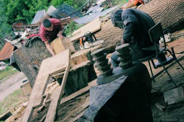 Красоту дерева я подчеркиваю отделкой. Работаю только стамеской или бензопилой, добиваясь приятной фактуры и эффекта «пожитости».