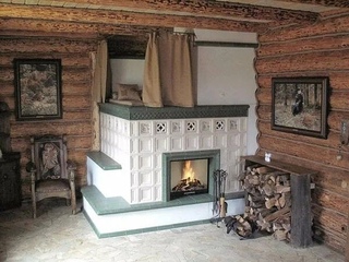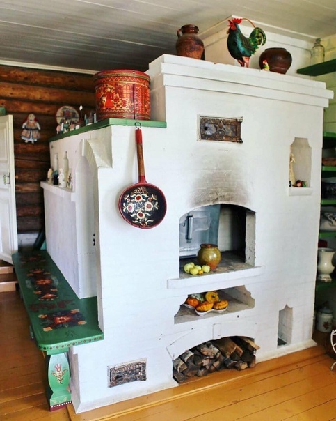 Одно из наиболее любимых решений, объединяющих в себе все достоинства настоящей русской печи: большое горнило для выпечки хлеба, удобную плиту для готовки и широкую лежанку, которую холодными зимними ночами можно использовать как дополнительное спальное место.