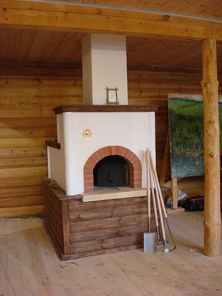 Она адаптирована под русскую печку, упрощена и сделана не круглой, как полагается, а прямоугольной