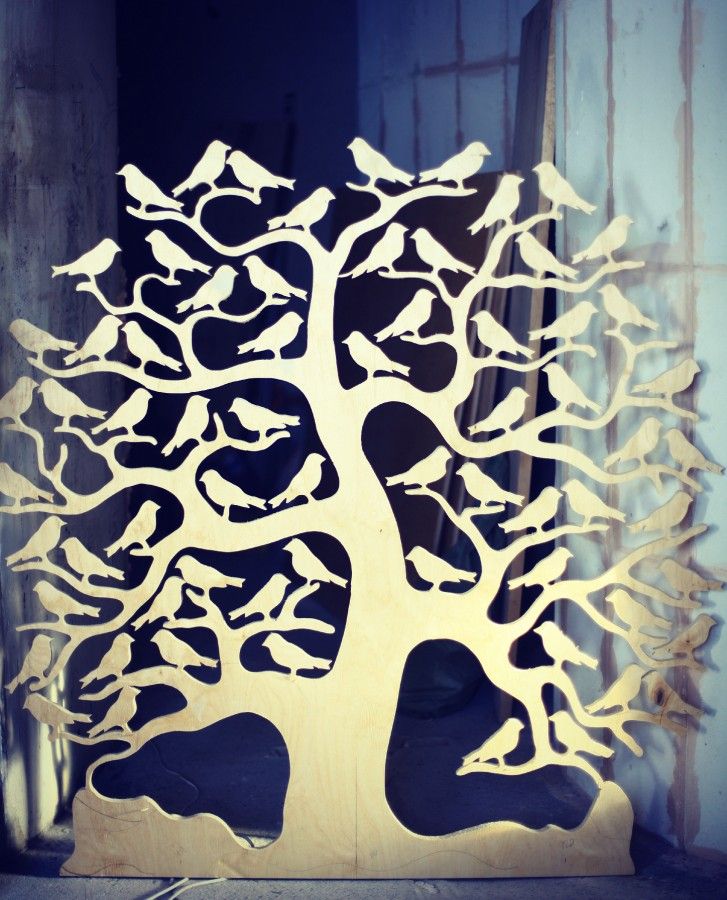 Работа начинается с того, что на каждом из листов отображают очертания лесной красавицы. Если есть шаблон, то его для удобства стоит приклеить скотчем, чтобы он не сдвинулся во время вырезания фигуры. Нарисовав контуры, можно прорезать их острым ножом. Важно не спешить на этом этапе, иначе края получатся неровными. Исправить такую оплошность можно, стесав шероховатости наждачной бумагой.