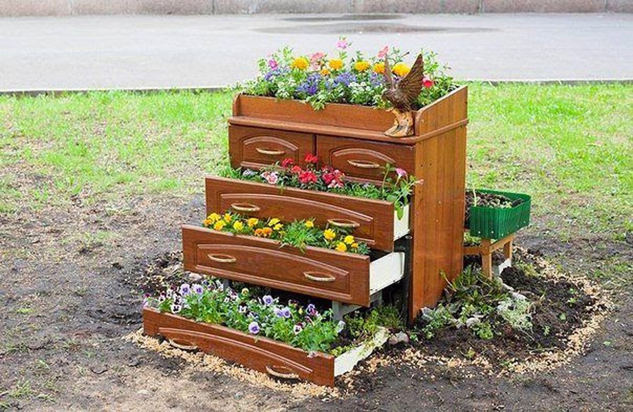 Многоярусные клумбы смотрятся очень эффектно и при этом они не требуют затрат на возведение.
