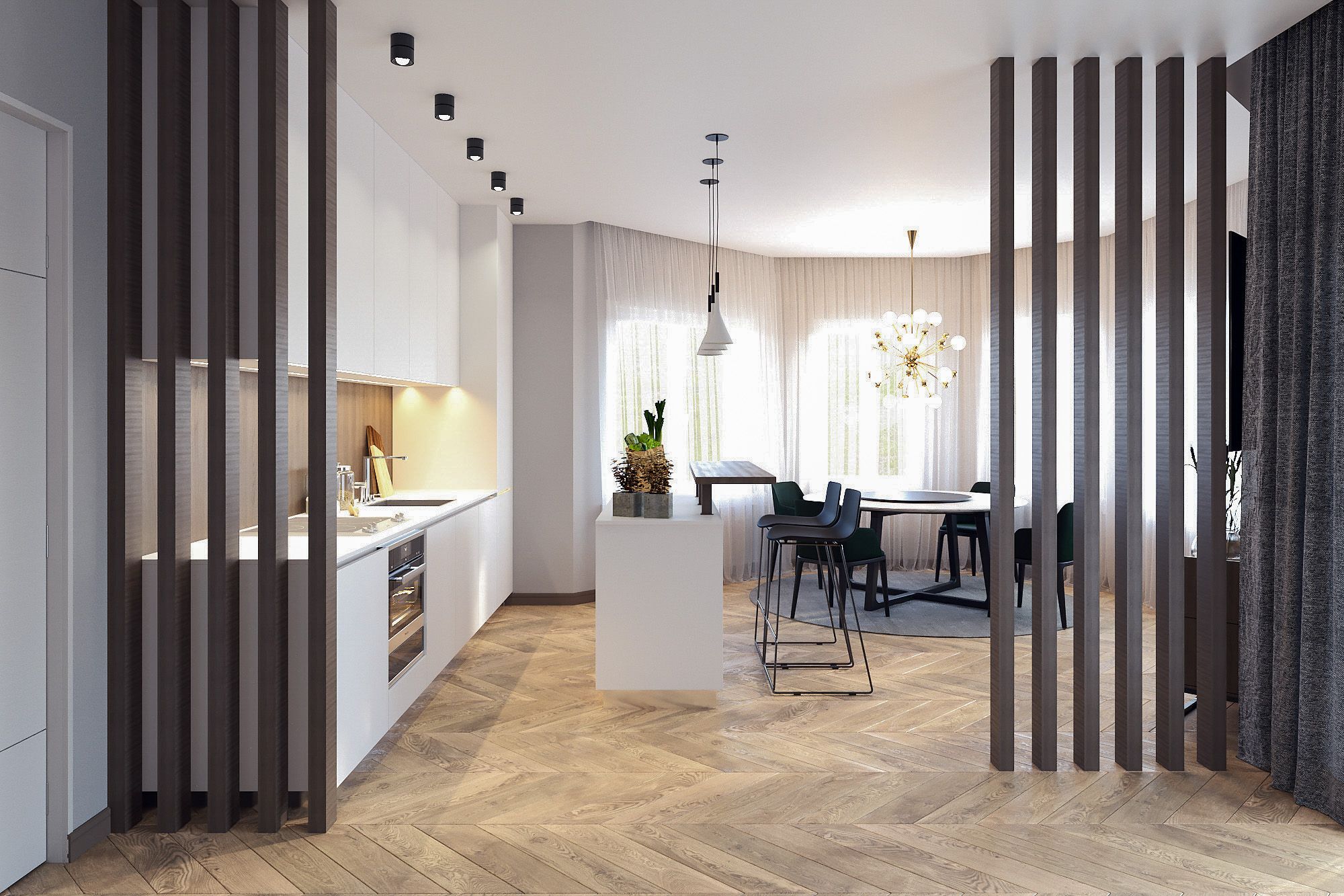 Реечные перегородки для зонирования