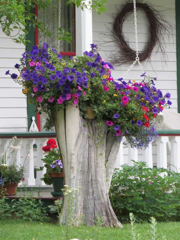 Материал также подойдет для создания необычных емкостей, в которые можно поместить цветы и развесить их под навесом дома.