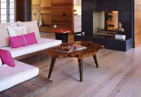 - Белое дерево в интерьере создает простор и ощущение чистоты. Наиболее часто встречается в современном стиле и минимализме. Белый пол подчеркивает яркость стен, деревянный потолок делает комнату длиннее, белая мебель подходит для спальни, столовой, реже гостиной и кухни.