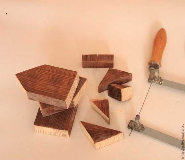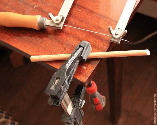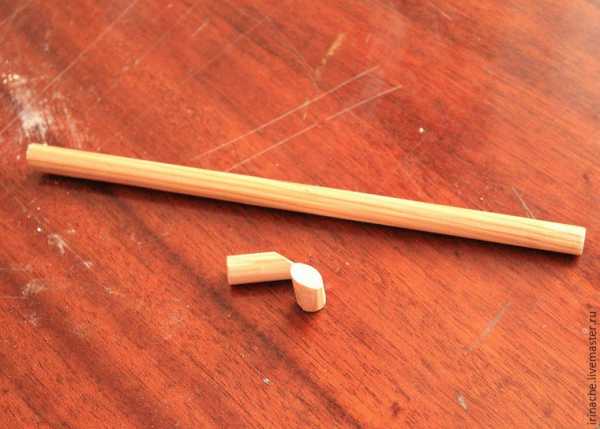 - Так же поступаем с палочкой для трубы. Палочку спиливаем под углом. Не страшно если неровно, лишнее сшлифуем.