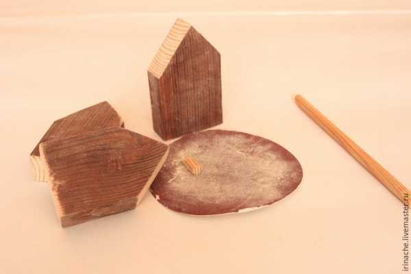 — на фото не видно, но далее эта штука есть. Это палочка круглая от когда-то купленной подставки для кукол. Можно использовать чопики ( такие штуки, ими мебель скрепляют), можно вообще, что-то напоминающее вам трубу на доме;