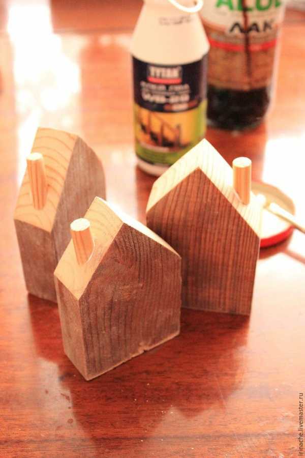 - Примеряем трубы к домикам, и тоже сошкуриваем, пока срез трубы не будет прилегать плотно к крыше домика. Клеем ПВА приклеиваем трубы к домикам, ждем пока высохнет, батареи центрального отопления вам в помощь.