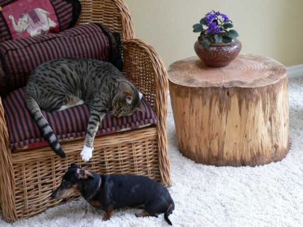 Оригинальный светильник из частей дереваРазнообразные пеньки и бревнышки могут играть множество ролей в интерьере, ими заменяют столики, стулья, кресла, лавочки. Применять их можно как в качестве садовой мебели, так и для веранды и в домашней обстановке. Правильно обработанные и декорированные, они станут изюминкой вашего дома.