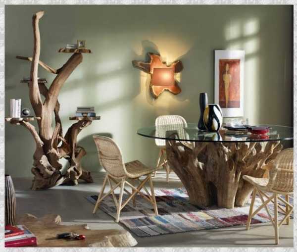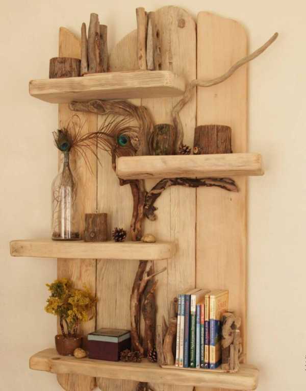 Сучки и коряги, чтобы украсить жилое помещение, должны подвергнуться обработке. Поиск необходимой формы и правильная компоновка материала способны дать удивительные результаты.