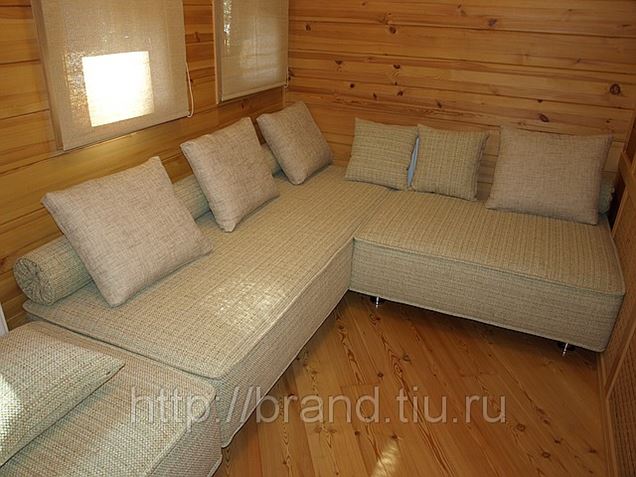 угловые и другие модели в комнату отдыха и в предбанник, маленькие и большие раскладные диваны