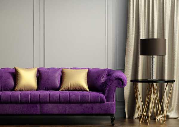 В каких стилях интерьера уместен диван фиолетового цвета