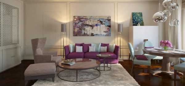 Фиолетовые оттенки обивки мягкой мебели смогут подчеркнуть как изысканность и роскошь классического интерьера, так и креатив современных стилей:
