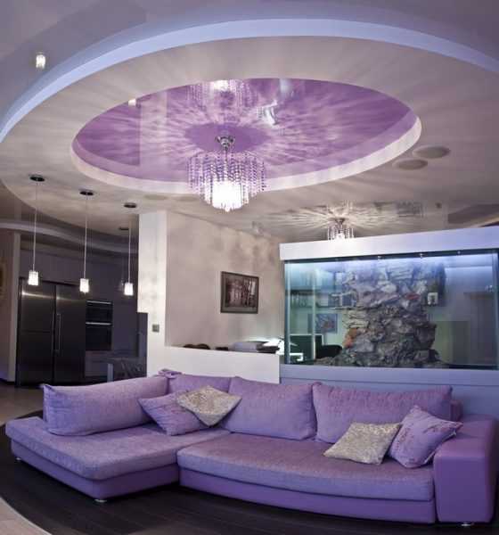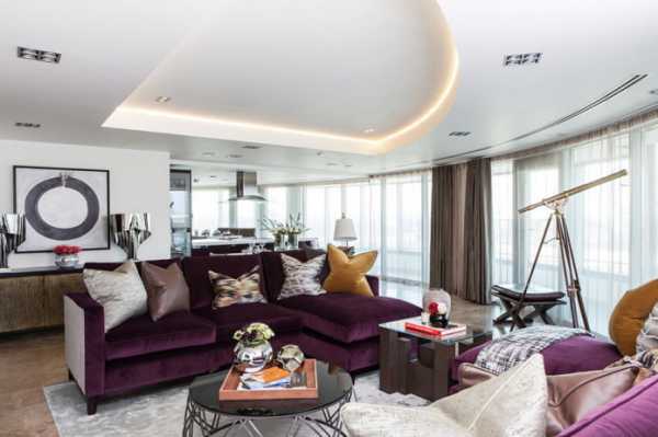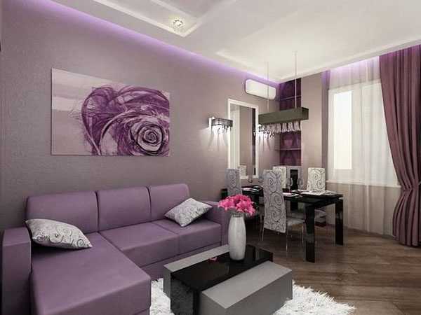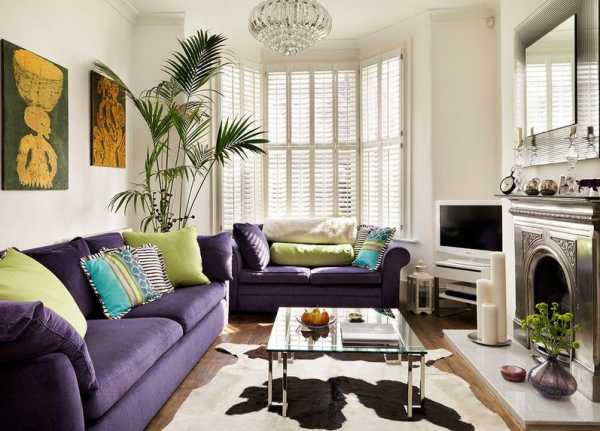Фиолетовый диван в интерьере в гостиной — 50 фото примеров