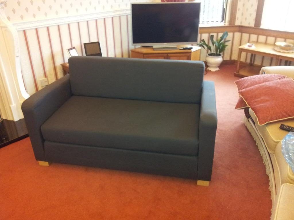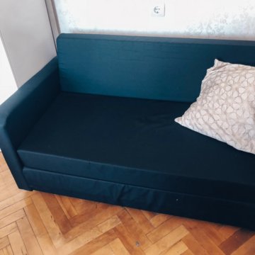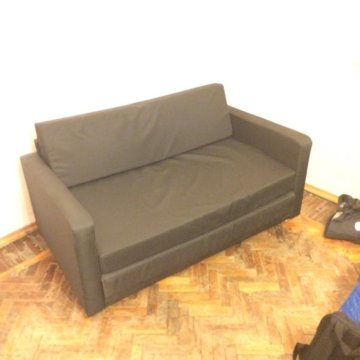 Диван Сольста числится как диван-кровать, то есть можно его разложить и даже спать. Буду откровенен — рассматривать Сольсту можно только как аварийный вариант размещения гостей, т.к. спальное место по сути представляет из себя три куска поролона, обтянутых тканью, ложатся 2 из этих 3 кусков прямо на пол.