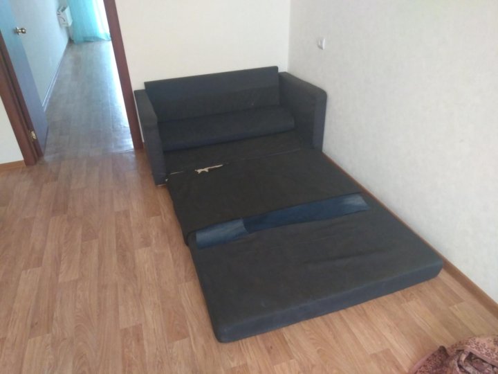 Как такового механизма раскладывания дивана нет, опорой для выдвижной секции служит пол. На неподвижной нижней части дивана лежат два поролоновых мата, которые при раскладывании и образуют спальное место.