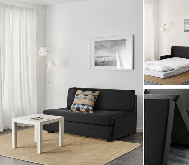 - Экономия пространства. Если площадь комнаты не позволяет разместить двухспальную кровать или габаритный диван, модель Сольста или Валлентуна от Икеа — неплохое решение.