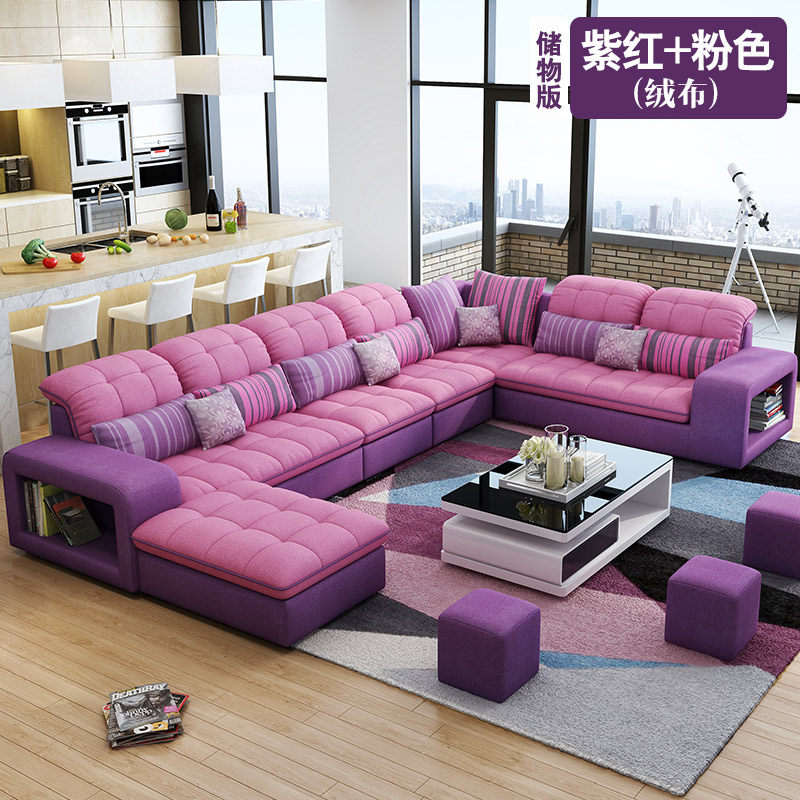 Угловой диван фиолетового цвета в гостиной