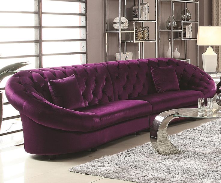 Фиолетовый диван не будет смотреться помпезно, если вы сделаете его частью интерьера в стиле поп-арт, постмодернизм или эклектика, избегая в интернете предметов мебели с коваными металлическими деталями, элементов в античном стиле.