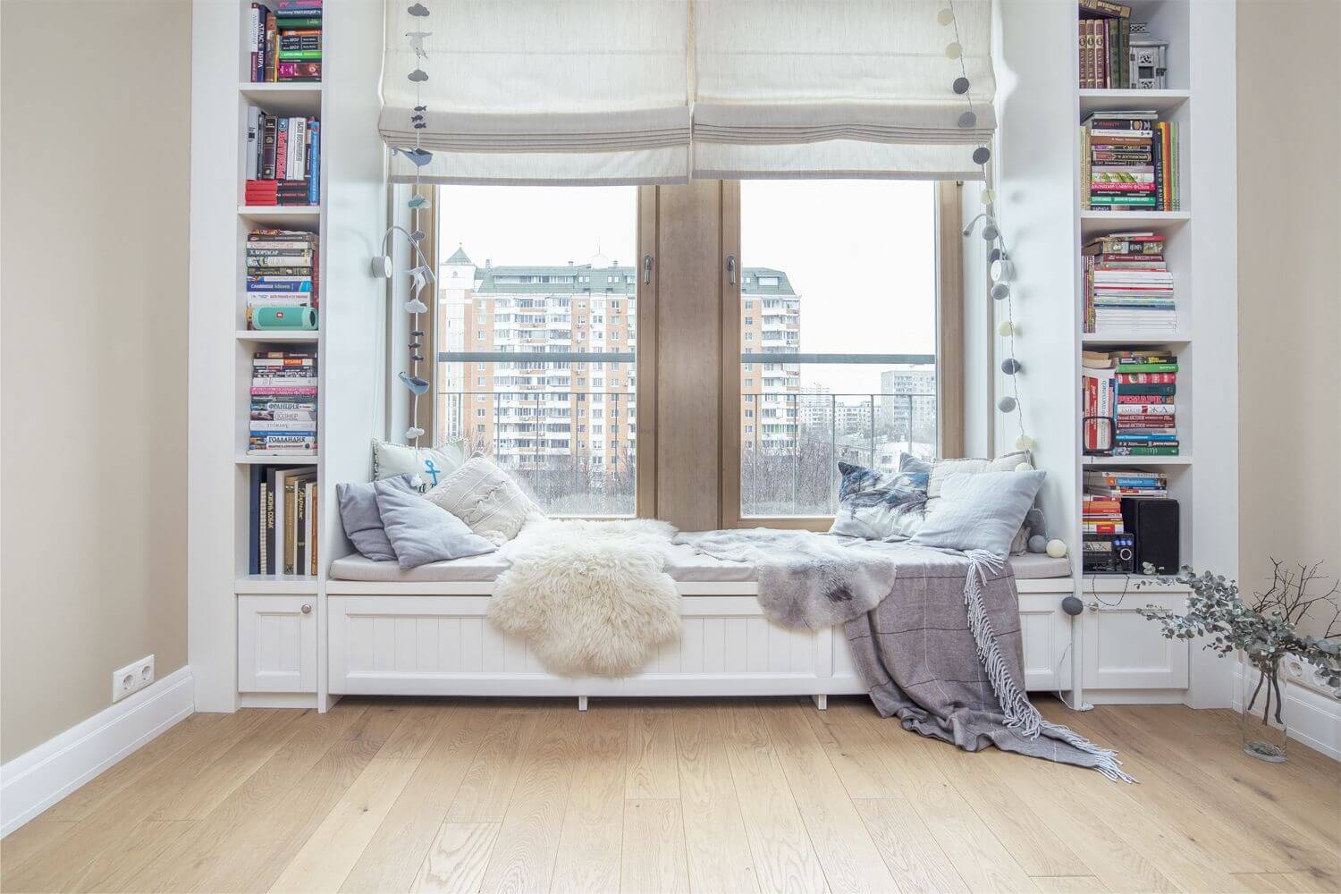 великолепное сиденье у окна с подушками