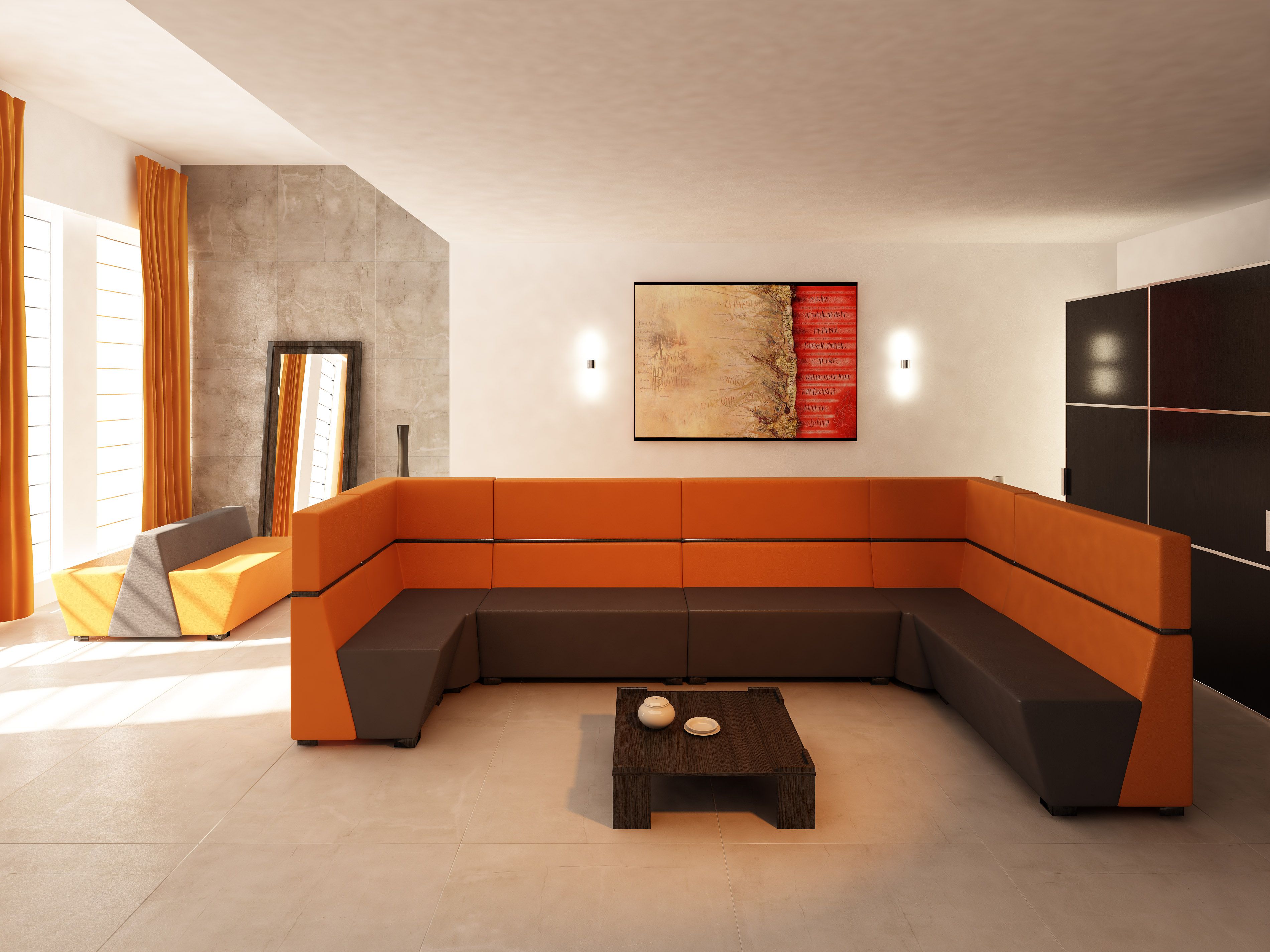 Например, для расположения дивана в одном из углов комнаты прекрасно подходит угловой диван. Если же диван располагается по центру, выбирают классическую модель с подлокотниками.