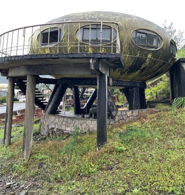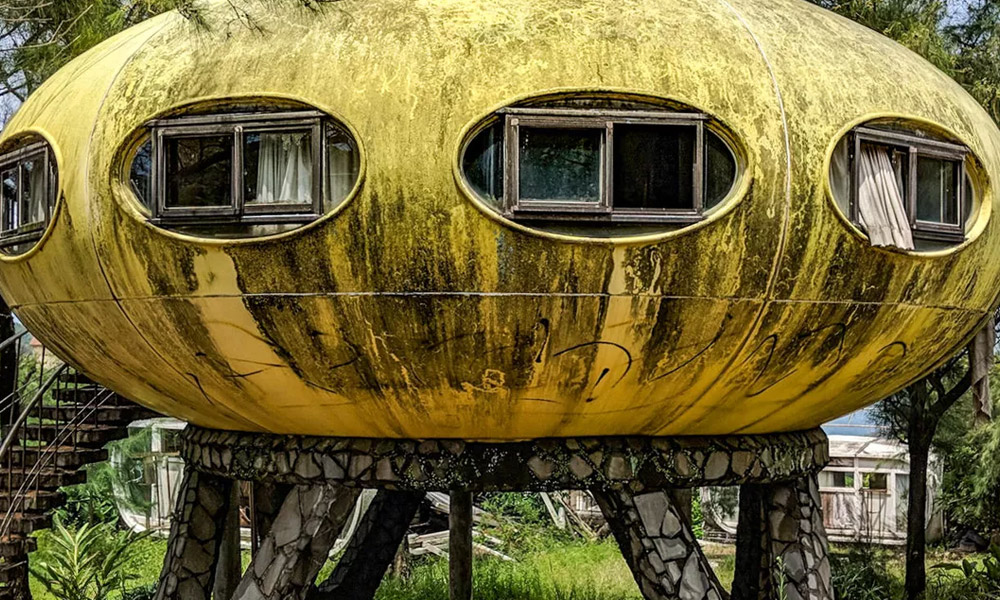 Тайвань. Пожалуй, самая завораживающая и специфичная локация инопланетного «типового» жилья находится в Wanli. Здесь есть целая заброшенная деревня с домами Футуро и Вентуро. Блогер kshanti-live пишет: «Началось все примерно 30 лет назад, когда производитель очень популярной зубной пасты TICO решил создать коттеджный поселок будущего… Ажиотаж был огромным, но… Как пишет тайваньская пресса, дома оказались совершенно неприспособленными для местного тропического климата».