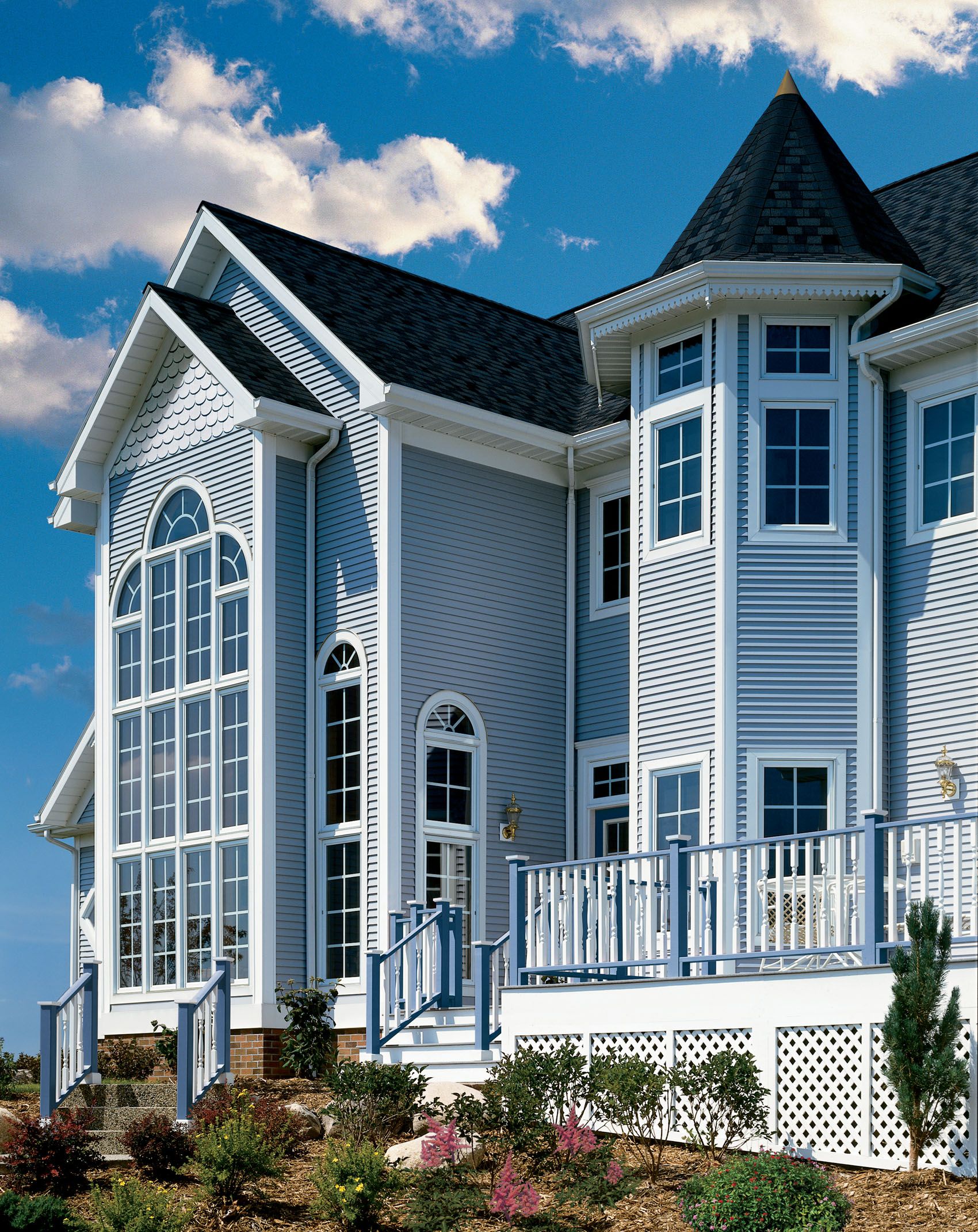 Окрашенный в голубой цвет сайдинг обладает превосходными декоративными свойствами: