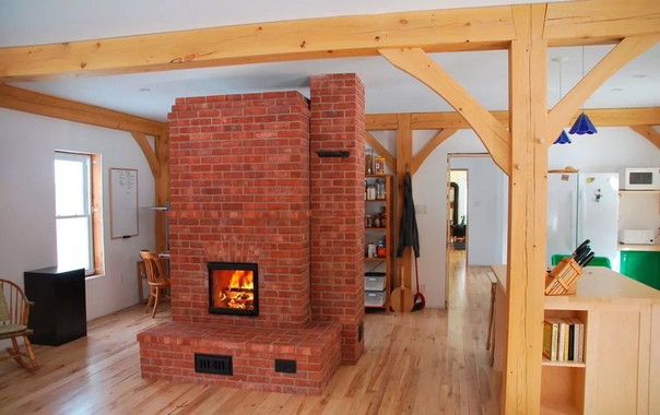 - В домах где установлены другое отопительное оборудование, устраивают дровяную печь для запасного источника тепла. Ведь часто случаются проблемы с электричеством или другим видом топлива.