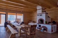 1. На 1 этаже установлена теплоемкая полностью из талькомагнезита печь «Зинаида» с панорамной дверцей Aito 0050 2000+.