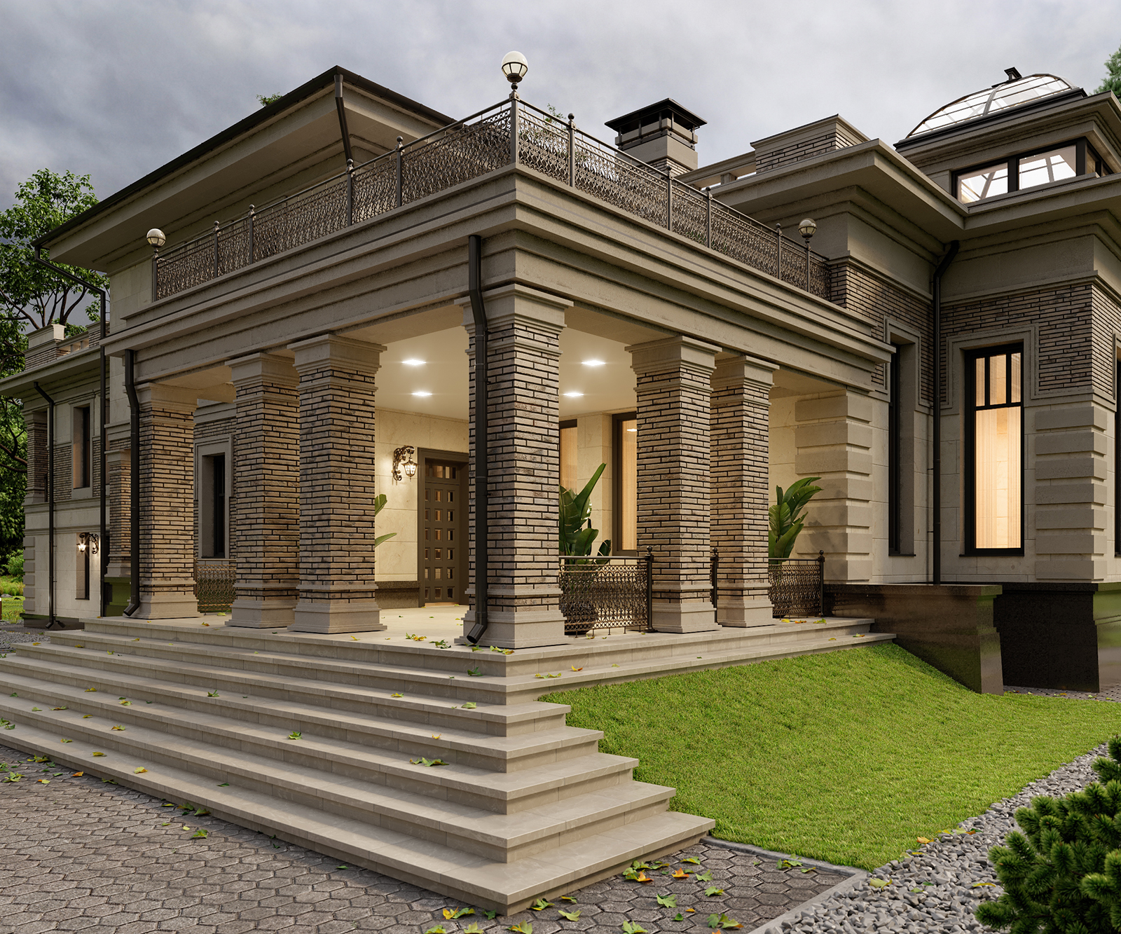 3D проект дома с использованием клинкерной плитки и штукатурки