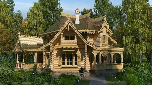 22 резных деревянных экстерьера домов в духе центральноевропейских и русских традиций
