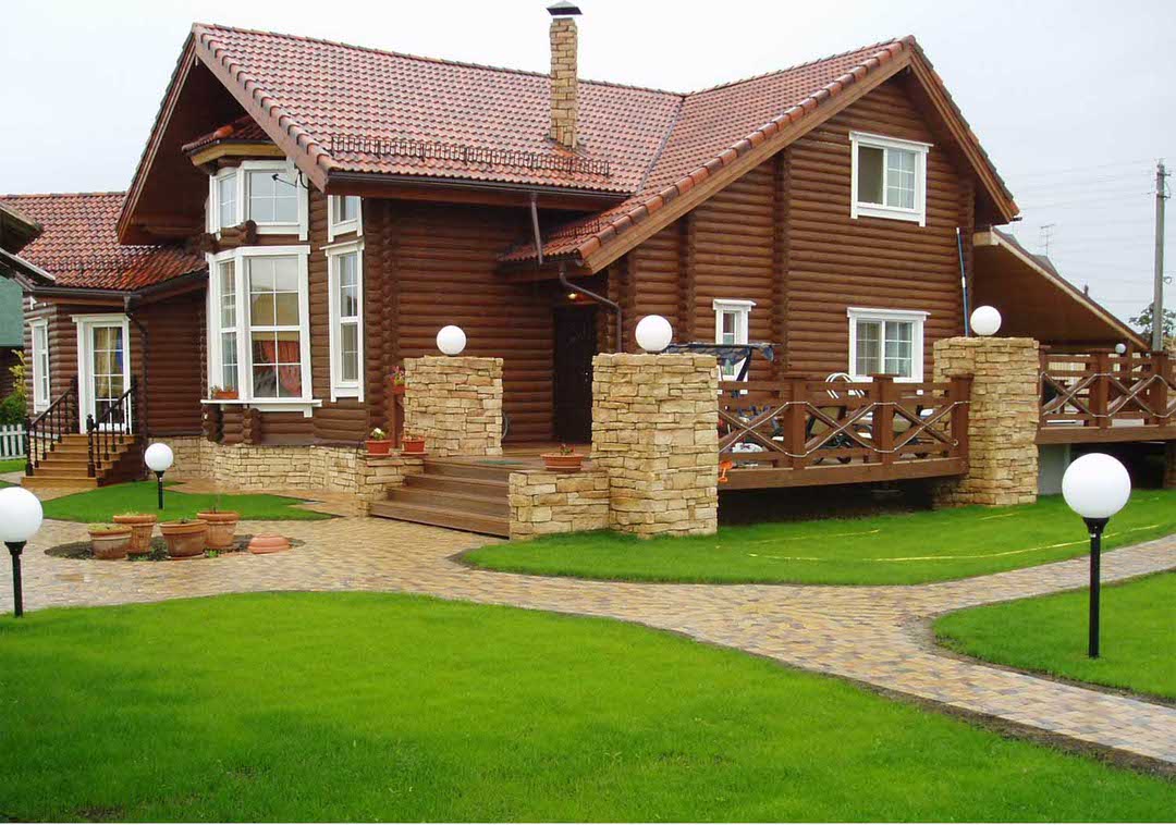 С целью предотвращения появления насекомых, грибков и плесени, а также для обеспечения пожаробезопасности древесину обрабатывают специальными составами. Возводят деревянные постройки довольно быстро, но они требуют времени на усадку. Материал отлично комбинируется с кирпичом и камнем. Это наглядно видно на фото красивых коттеджей, которые, кроме привлекательности, отличаются прочностью и практичностью.