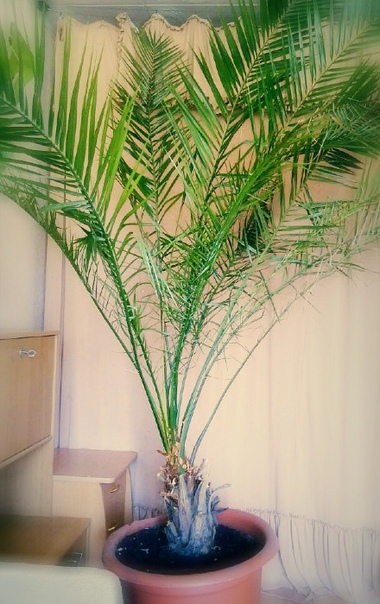 Комнатная финиковая пальма Phoenix dactyliferaФиниковая пальма: самая распространенная, живущая в домах человека уже не одно столетие. Идеальный вариант для начинающих пальмоводов, своего рода базовый этап для дальнейшего углубления в выращивание более диковинных видов. Единственная сложность — в будущем пальма продолжит рост и рано или поздно достигнет потолка…
