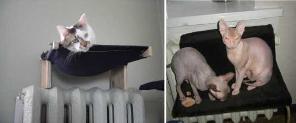 Можно обустроить уютное место для кошки в подставке для цветов, в журнальном столике и кресле с ящиком для белья. Главное, чтобы животное имело свободный вход и выход. Гамак для зверя можно натянуть под сиденьем стула, под журнальным или обеденным столом, в дверном проеме, между двумя батареями и в других местах, где тепло и есть, как минимум, 2 опоры.
