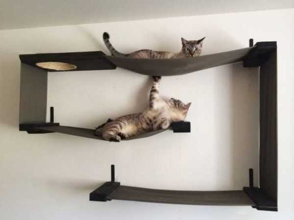 Можно подвесить гамаки и лежанки таким образом, чтобы животное перепрыгивало из одной в другую, попутно тренируя свои навыки в преодолении препятствий. Если вы хотите, чтобы кошка была в прекрасной форме, вам придется играть с ней каждый день либо придумать механизмы, где она будет развиваться без вашего участия. Это может быть вращающееся колесо, внутри него подвешивается игрушка, которую кошка будет ловить, бегая по установке.