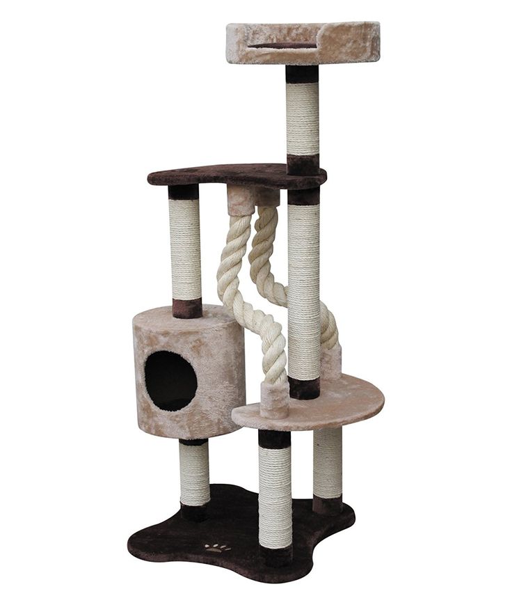 6. Многоуровневое кошачье дерево с тканью и джутовой веревкой