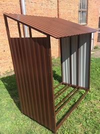 Более надежным будет стационарный дровник из стальной круглой или профильной трубы, швеллера. Каркас обшиваем стальной сварной сеткой.
