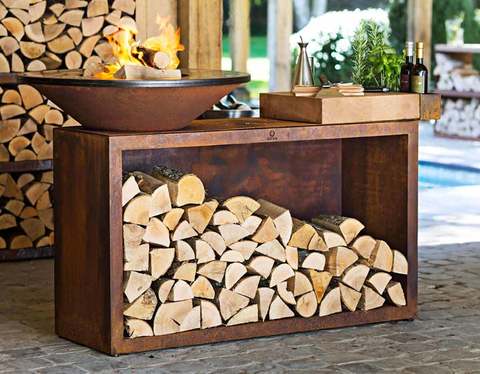 Дровницы из металла с современным дизайном.