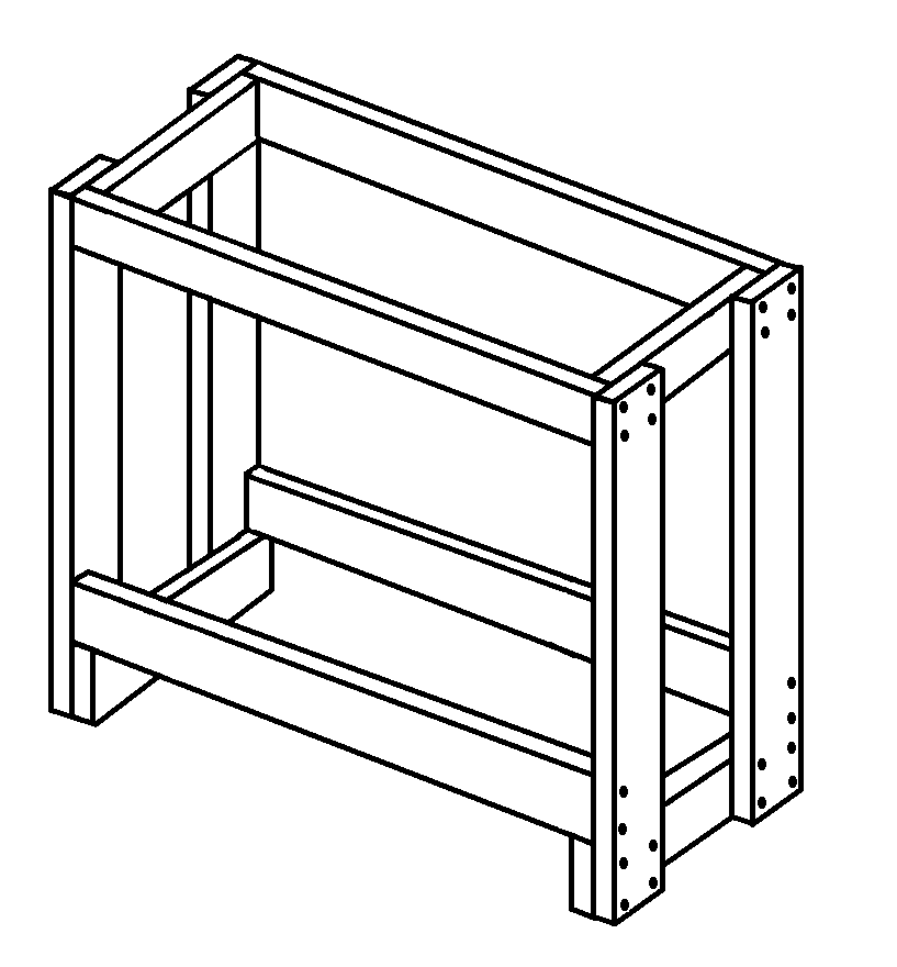 - 4 – 2×4 @ 29″ (я хотел, чтобы высота была всего 3 фута, поэтому эти четыре части являются вертикальными опорами)