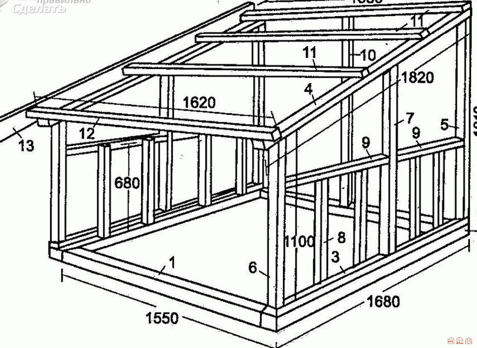 - самая простая конструкция, это навес. Он состоит из трёх стен, крыши и приподнятого над уровнем земли пола.