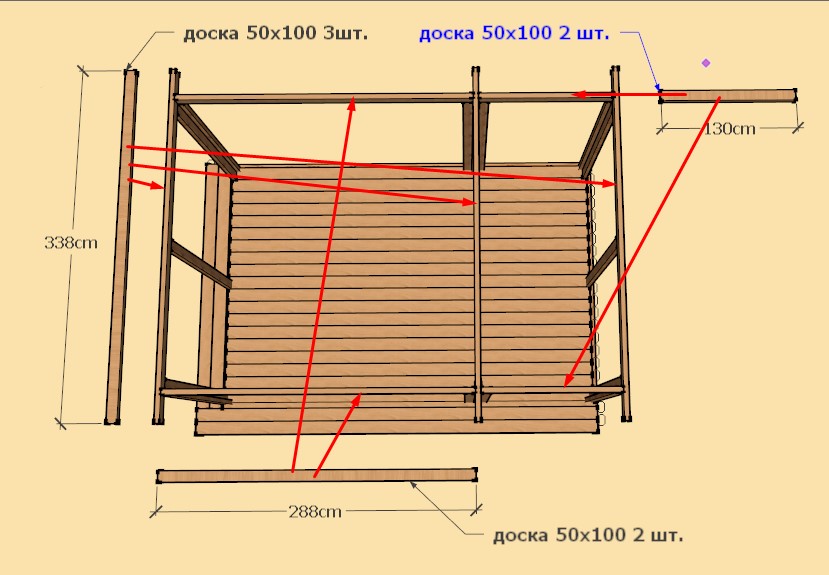 проекты дровницы, чертежи, список стройматериала для дровника, размеры