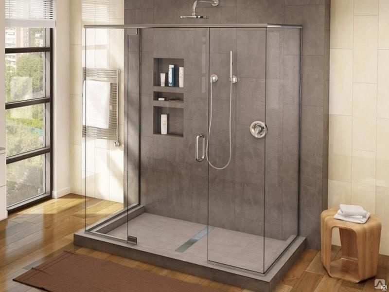 Конструктивно душ данного типа весьма прост. Основа – пол, в него встраиваются коммуникации для слива, а перегородки обычно крепят прямо к стенкам ванной комнаты. Эта система обладает несколькими преимуществами: