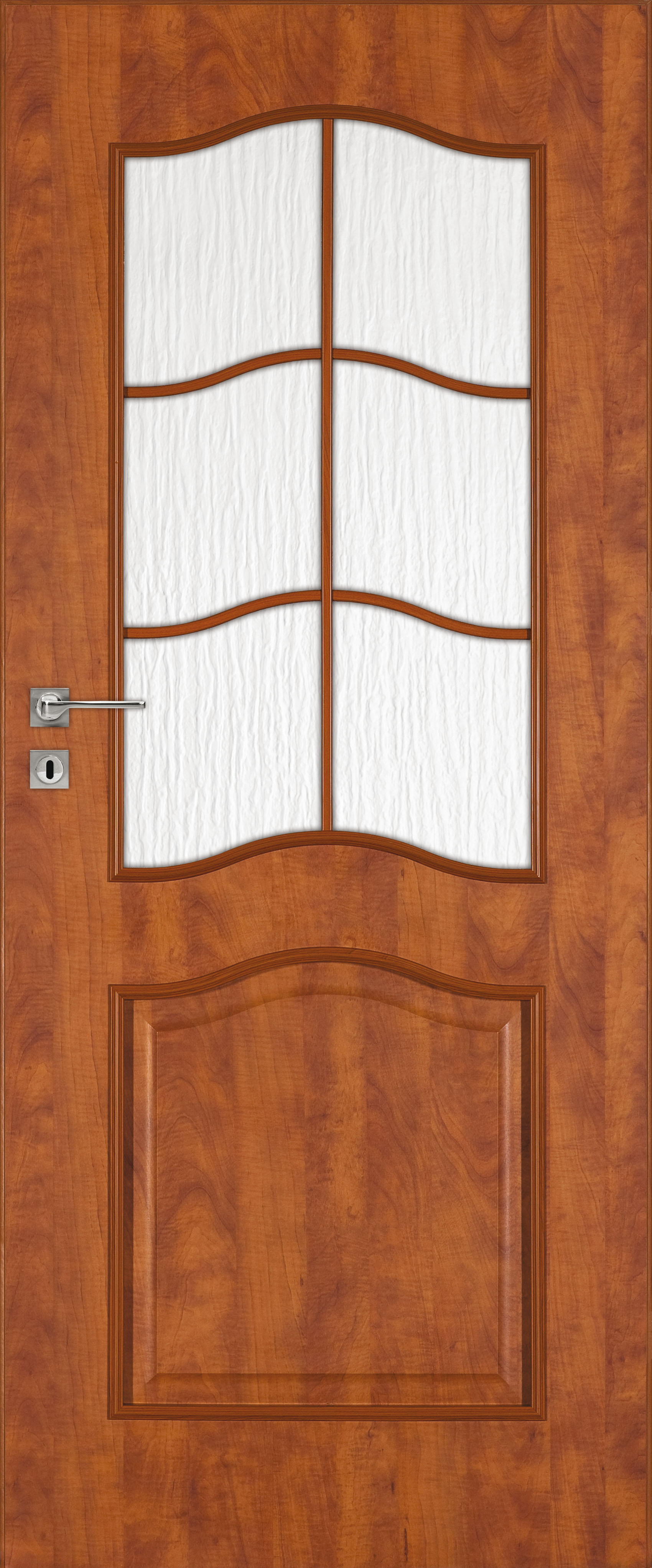Независимо от оттенка, который вы выберете, дверное полотно может быть глухим или дополнено вставками из стекла либо витражами.