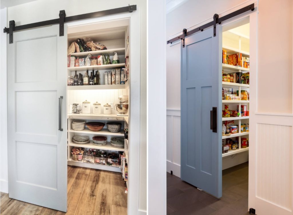 Добавление амбарной двери к вашей кладовой — это простой способ преобразить вашу кухню. Кладовые — отличный способ использовать двери сарая, так как они добавляют практичности и их легко убрать, когда вам нужно взять один или два ингредиента.