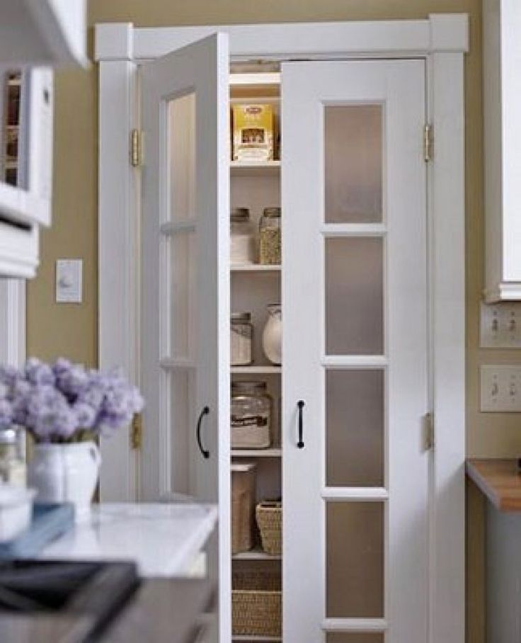 Классическая французская дверь — еще одна любимая дверь кладовой. Ищите узкий набор дверей для маленькой кладовой и более широкий набор для большей.