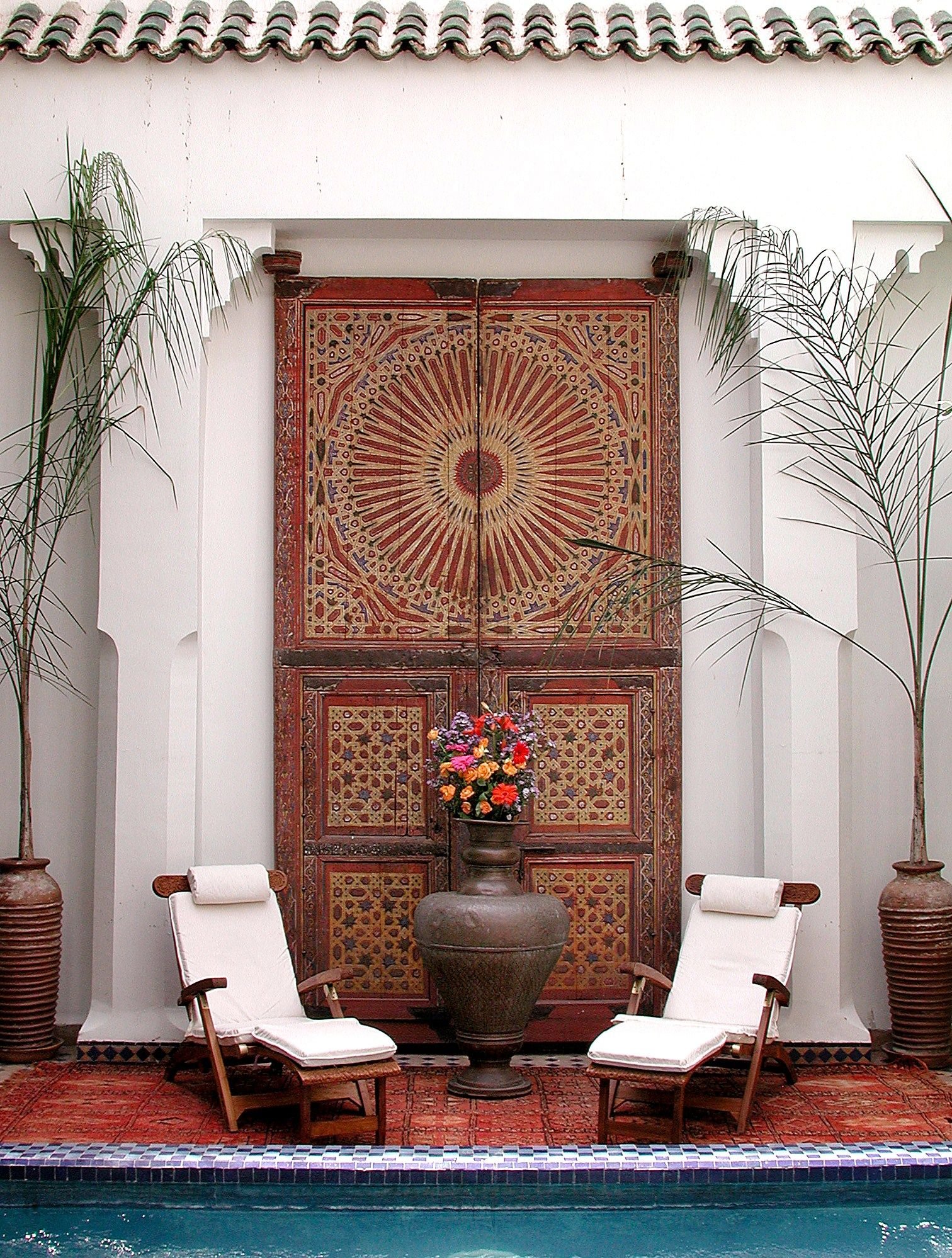 Средиземноморская входная дверь открывает проход к бассейну.