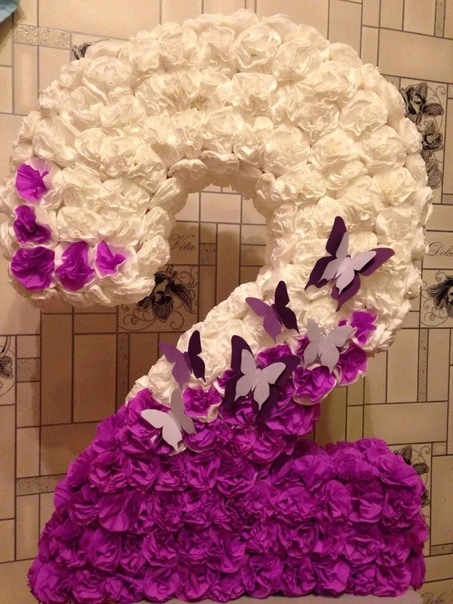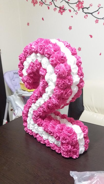 Получилась лёгкая и крепкая цифра, которая выдержит самую активную фотосессию. Но есть и другие способы сделать цифры из салфеток: мастер- класс смотрите ниже.