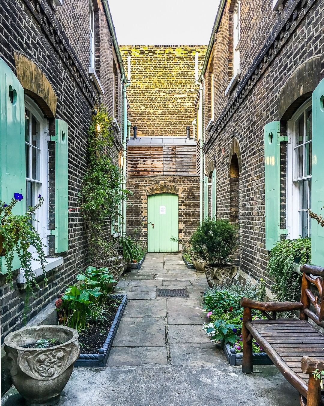 Небольшой обитый деревом двор с романтической атмосферой