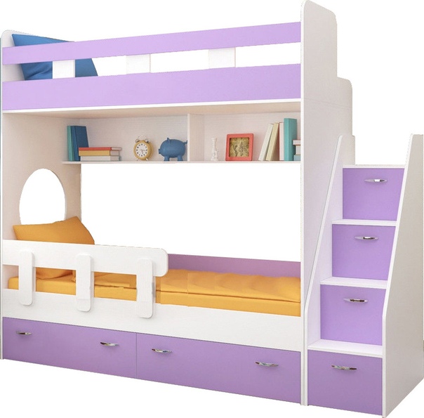 27. Симпатичная сиреневая двухъярусная кровать с лестницей и письменным столом?